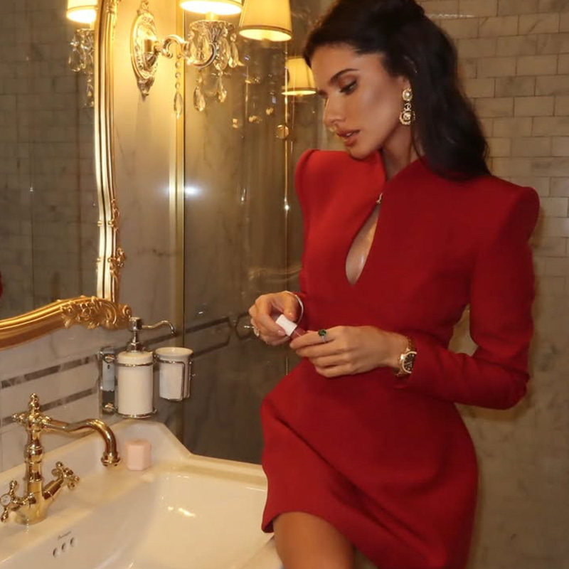 Designed with long sleeves and a tailored waist, this red evening dress enhances natural body proportions while maintaining comfort. The A-line skirt flows gracefully, making it ideal for formal dinners, parties, and elegant evening occasions