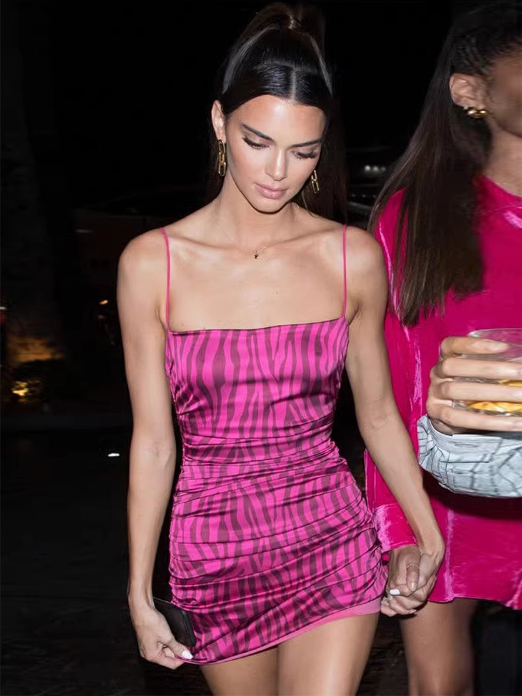 This elegant dress features a rose red striped pattern and a one-shoulder neckline for a refined and modern look. Inspired by European and American fashion, it is suitable for parties, evening outings, and stylish social occasions.