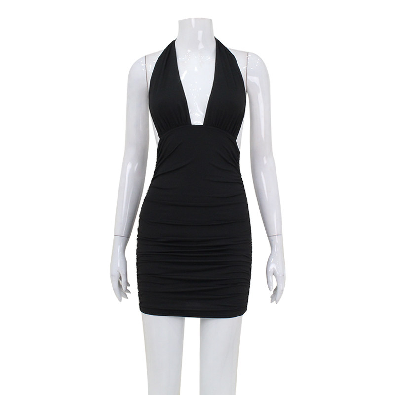 Jaghds | European and American Deep V-Neck Backless Halterneck Lace-Up Summer Dress