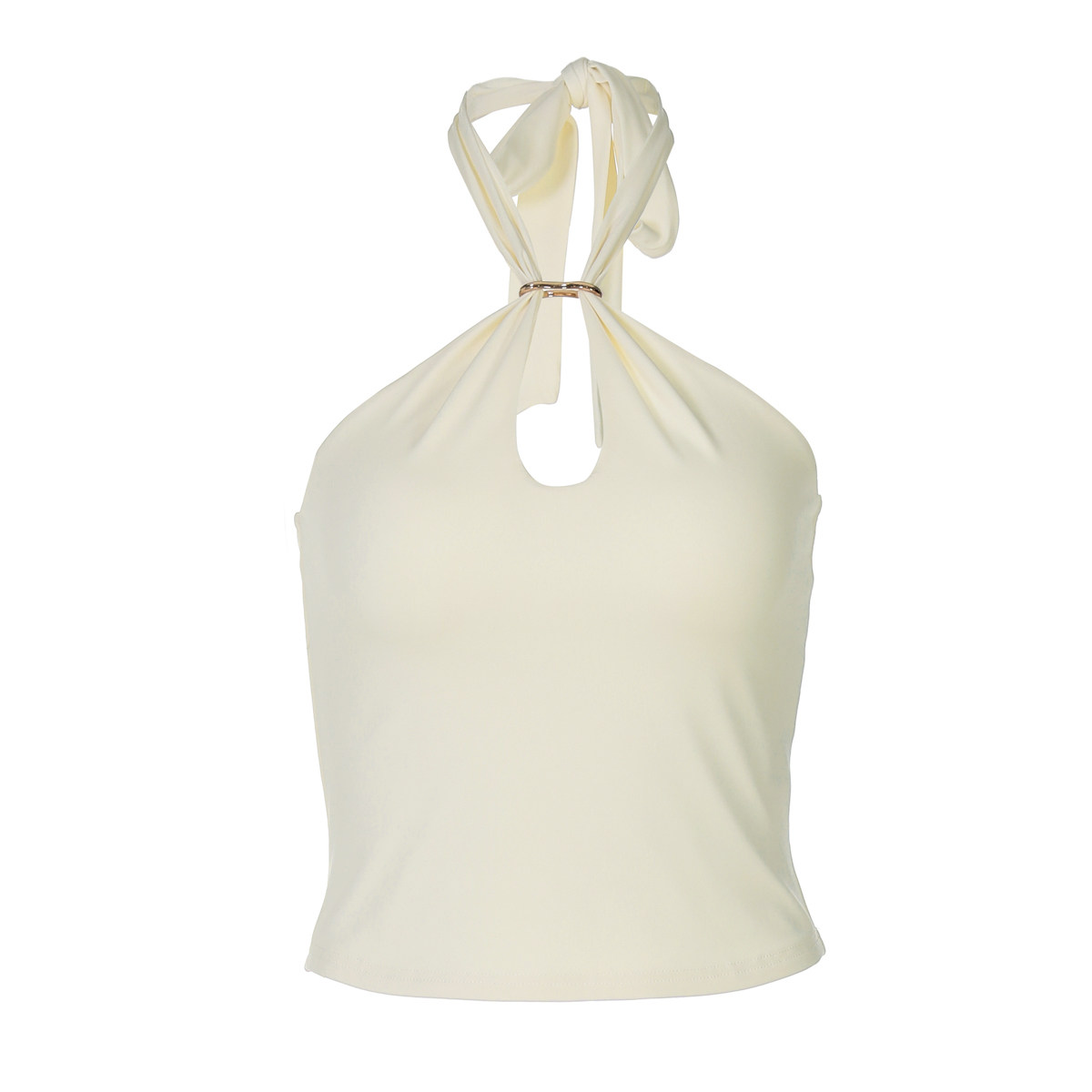 Jaghds | Summer Lace Halter Top for Women with Metal Buckle, Backless Slim Fit Design