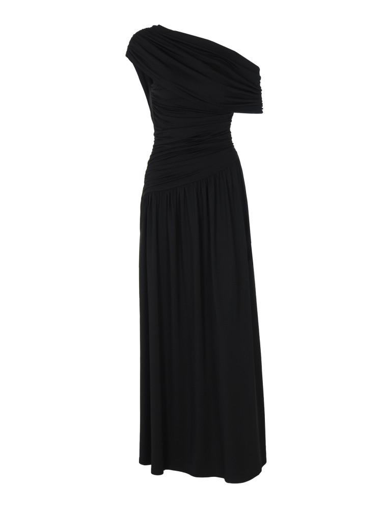 Jaghds | European Style Sloping Shoulder Irregular Pleated Long Dress